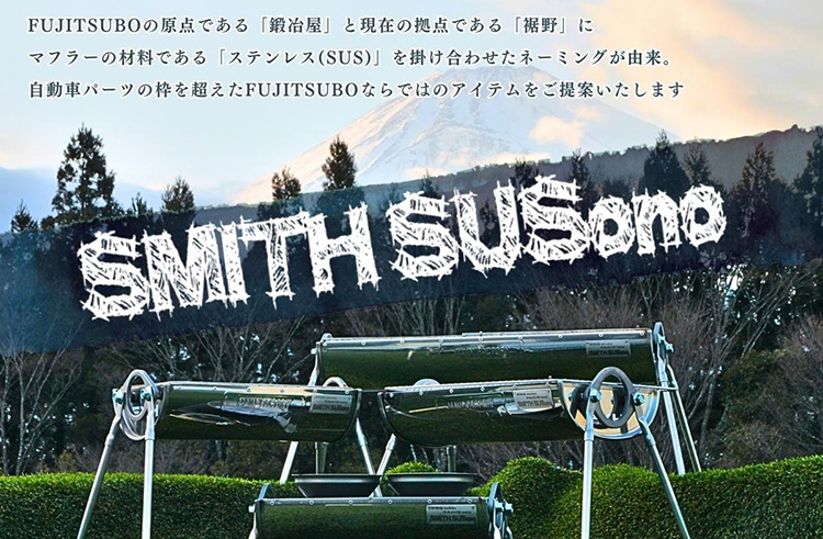マフラーがバーベキューコンロになっちゃった!フジツボならではの技術で作るSMITH SUSonoのキャンプギアを展示します。