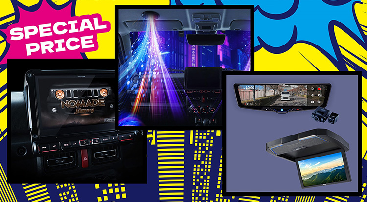 愛車の純正品と交換しても違和感のない洗練されたデザイン、カーナビ ビッグX・ドライブレコーダー搭載デジタルミラー・マルチビューバックカメラ・後部座席用モニター リアビジョン・ハイエース専用OPTMサウンドシステム・メティオサウンドなどのアルパイン「スズキ・ジムニーノマド/ジムニーシエラ/ジムニー設計製品」「トヨタ・ハイエース/ハイエースワイドボディ専用設計製品」を是非デモカーで実際に体感してください。
