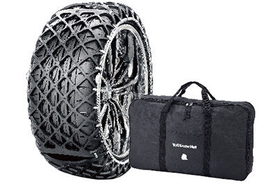 降雪時の寒い場所で、素早く、ラクに、確実に装着可能。軽くて扱いやすい画期的な布製タイヤチェーン。