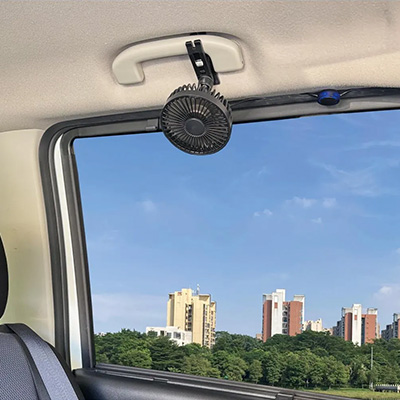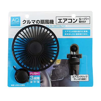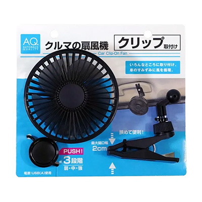 AQ. クルマの扇風機 クリップ取付け ブラック