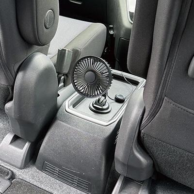 ならばカーエアコンを使用となるのですが、「エアコンの直風は苦手」「男性の快適な温度にすると女性は冷やしすぎで寒い」「後部座席は冷気が届きにくいので暑い」「子供には自然な涼しさを」など、車内エアコンあるあるが問題になることも・・・そんな時にはカーファン=車内用扇風機がおすすめです。