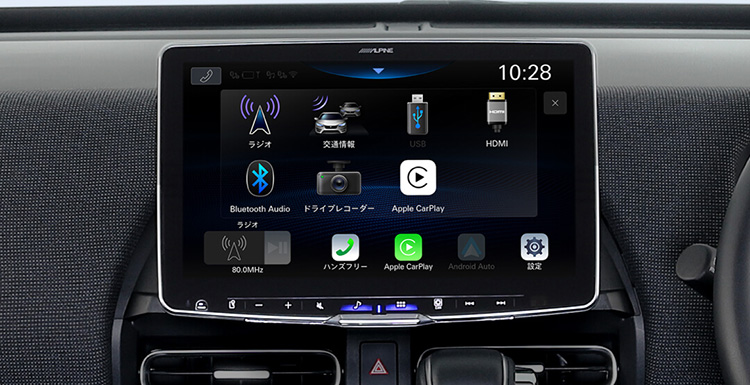 11型大画面とフルデジタルAMP搭載。フリードの大画面カーナビに新たな装着を実現します。音楽好きのためのハイレゾ対応、新デザイン・サウンドホームで音を操り格別なドライブを。Apple CarPlay/Android Autoに対応。HDMI入出力/AUX入力/アルパインダイレクト接続に対応、スマホアプリの動画を楽しめる他に幅広いシステムアップが可能。