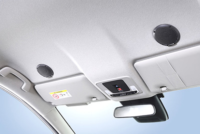 降り注ぐサウンド、響き渡る重低音。市販初のルーフスピーカー&ドアウーファーのレイアウト。車室内を包み込む、全身で感じる圧倒的サウンドへ生まれ変わります。