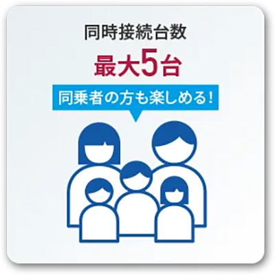 ・同時接続最大5台、同乗者みんながLTEデータ通信量無制限で使い放題。