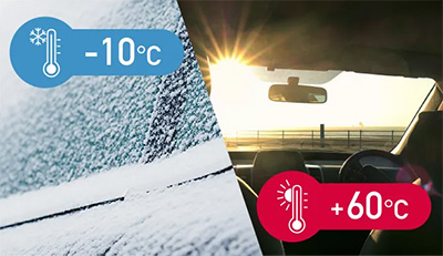 動作保証温度-10℃~60℃で、車室内特有の過酷な環境にも対応します。