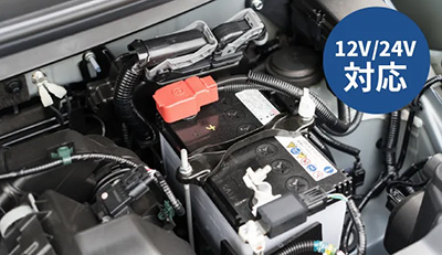 付属のシガーチャージャーは12V/24V車に対応