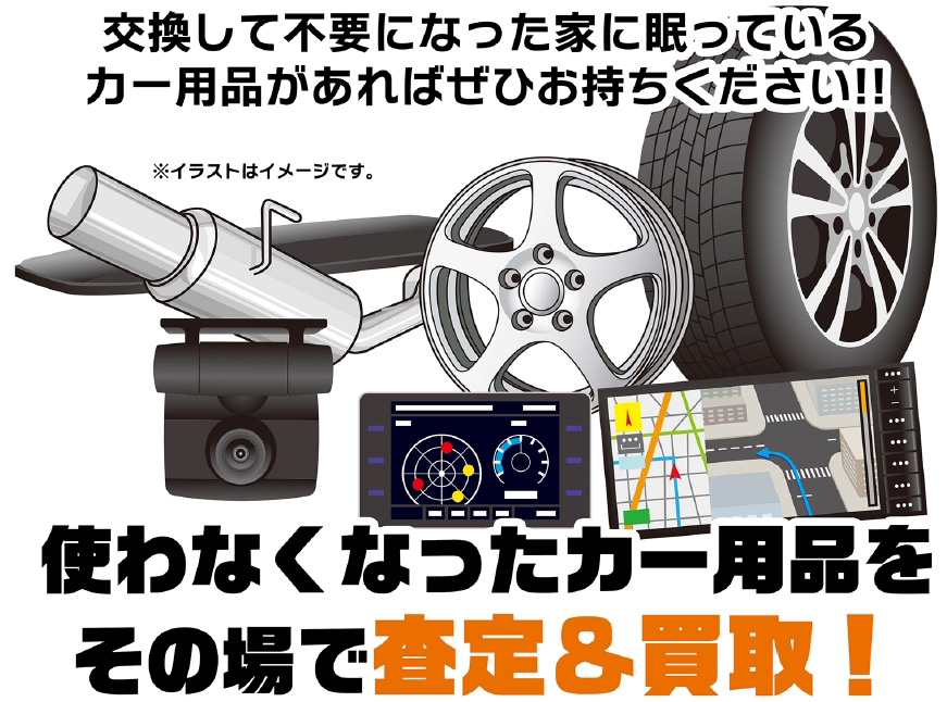 新規に購入して不要となったタイヤ・ホイール・カーナビなどの中古カー用品を店舗へ直接お持ちいただければ、その場でスピーディーに査定&買取します。